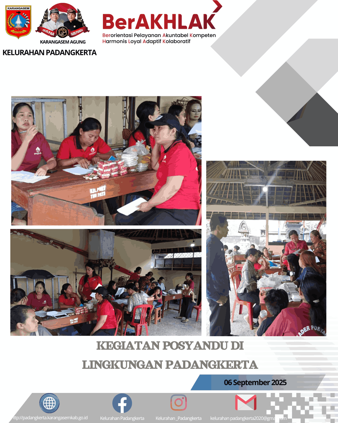 Kegiatan Posyandu di Tiga Lingkungan Padangkerta di laksanakan pada hari Selasa, 09 September 2025 di banjar tengah lingkungan padangkerta tengah.. - Posyandu padangkerta kaler jmlh sasaran 31 - Posyandu padangkerta kelod jmlh sasaran 35 - Posyandu Padangkerta Tengah jmlh sasaran28.