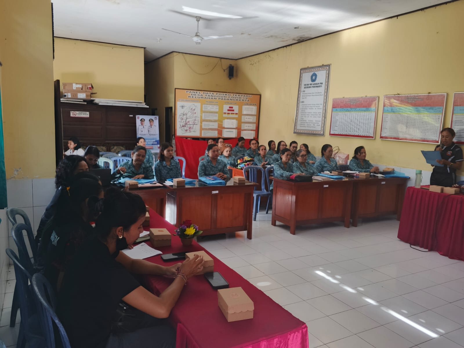 Kegiatan pelatihan dan pembinaan kader PKK dilaksanakan sebagai upaya meningkatkan kapasitas serta keterampilan para kader dalam mendukung program-program pemberdayaan masyarakat. Pelatihan ini diikuti oleh para kader dari setiap Lingkungan yang hadir dengan penuh antusias. Dalam kegiatan ini, para kader mendapatkan materi mengenai penguatan administrasi PKK, peningkatan kemampuan pendataan keluarga, pemahaman 10 Program Pokok PKK, serta praktik langsung terkait pelaksanaan kegiatan Posyandu dan program kesehatan keluarga. Narasumber memberikan penjelasan yang mudah dipahami disertai contoh-contoh penerapan di lapangan, sehingga peserta dapat lebih memahami peran penting kader dalam mendukung pembangunan di tingkat desa. Selain materi, kegiatan juga diisi dengan diskusi kelompok dan tanya jawab untuk menggali berbagai kendala yang dihadapi kader selama melaksanakan tugas di wilayah masing-masing. Melalui sesi diskusi ini, diharapkan muncul solusi dan inovasi sederhana yang dapat diterapkan guna memaksimalkan layanan kepada masyarakat. Dengan adanya pelatihan dan pembinaan ini, kemampuan kader diharapkan semakin meningkat sehingga dapat menjalankan tugas dengan lebih terarah, profesional, serta berkontribusi aktif dalam mewujudkan keluarga yang sehat, mandiri, dan sejahtera. Kegiatan ditutup dengan penyampaian komitmen bersama untuk terus memperkuat gerakan PKK melalui kerja sama dan semangatgotongroyong.